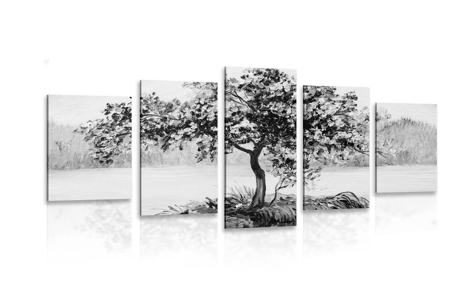 5-dielny obraz orientálna čerešňa v čiernobielom prevedení