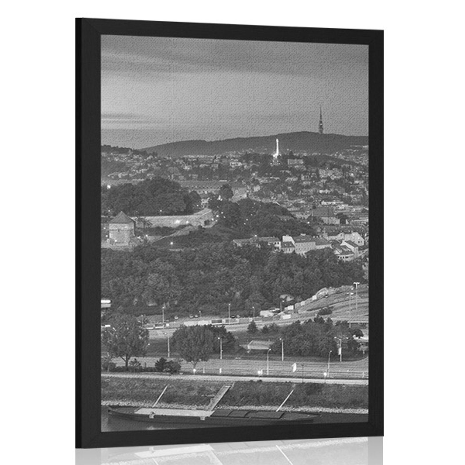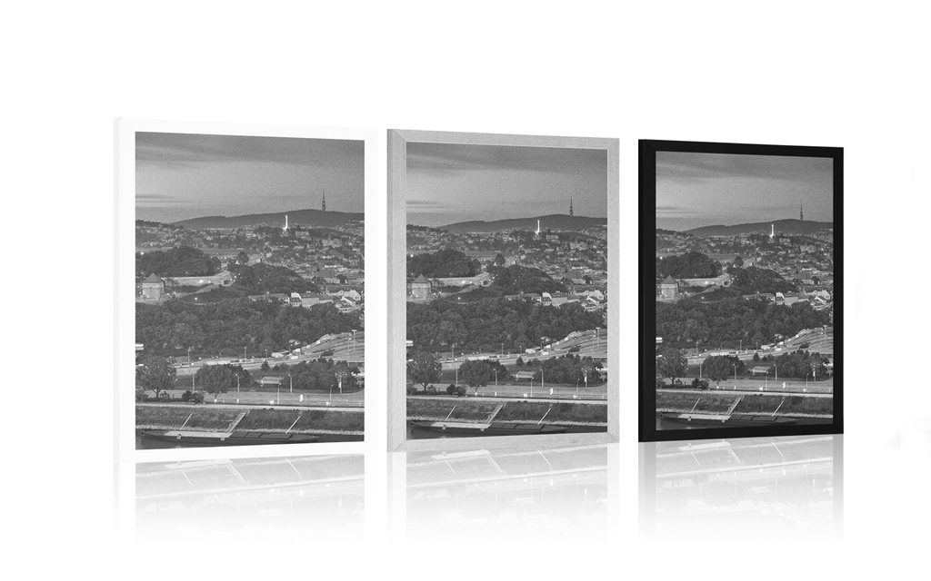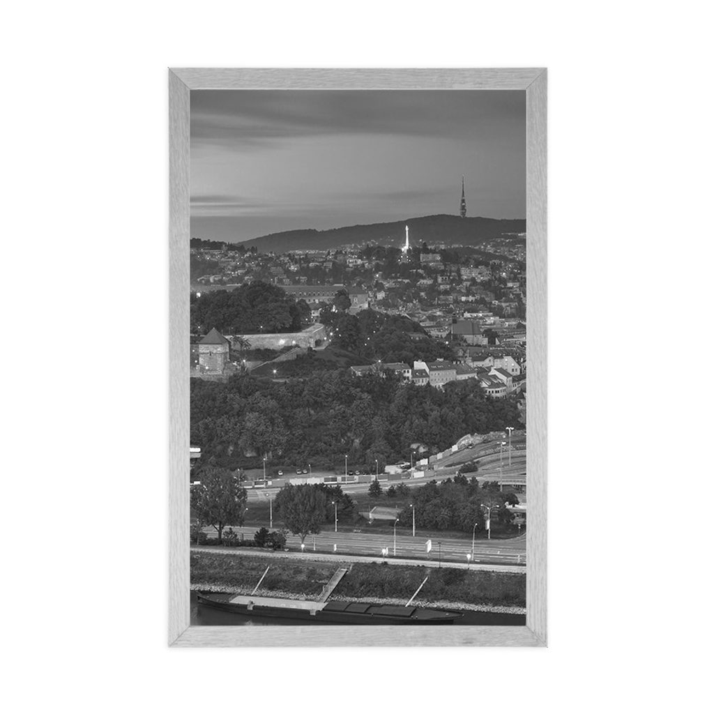 PLAGÁT POHĽAD NA NOČNÚ BRATISLAVU V ČIERNOBIELOM PREVEDENÍ - ČIERNOBIELE - PLAGÁTY