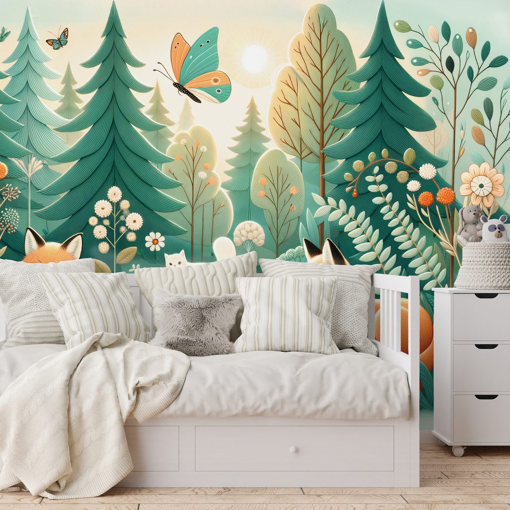 Vstúpte do čarovného sveta prírody s našou tapetou lesných zvieratiek v pastelových farbách. Motiv zahŕňa roztomilé líšky, biele mačiatko a farebné motýle obklopené bujnou vegetáciou a kvetinami. Jemné pastelové odtiene vytvárajú upokojujúcu a hravú atmosféru, ideálnu pre detské izby alebo relaxačné priestory. Táto tapeta je skvelou voľbou pre tých, ktorí chcú dodať svojmu interiéru nádych prírody a fantázie. Vyrobená z kvalitných materiálov, zaručuje dlhú životnosť a jednoduchú aplikáciu.