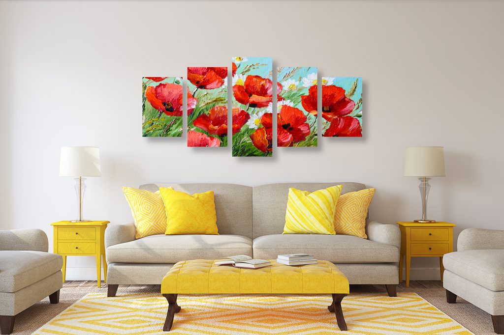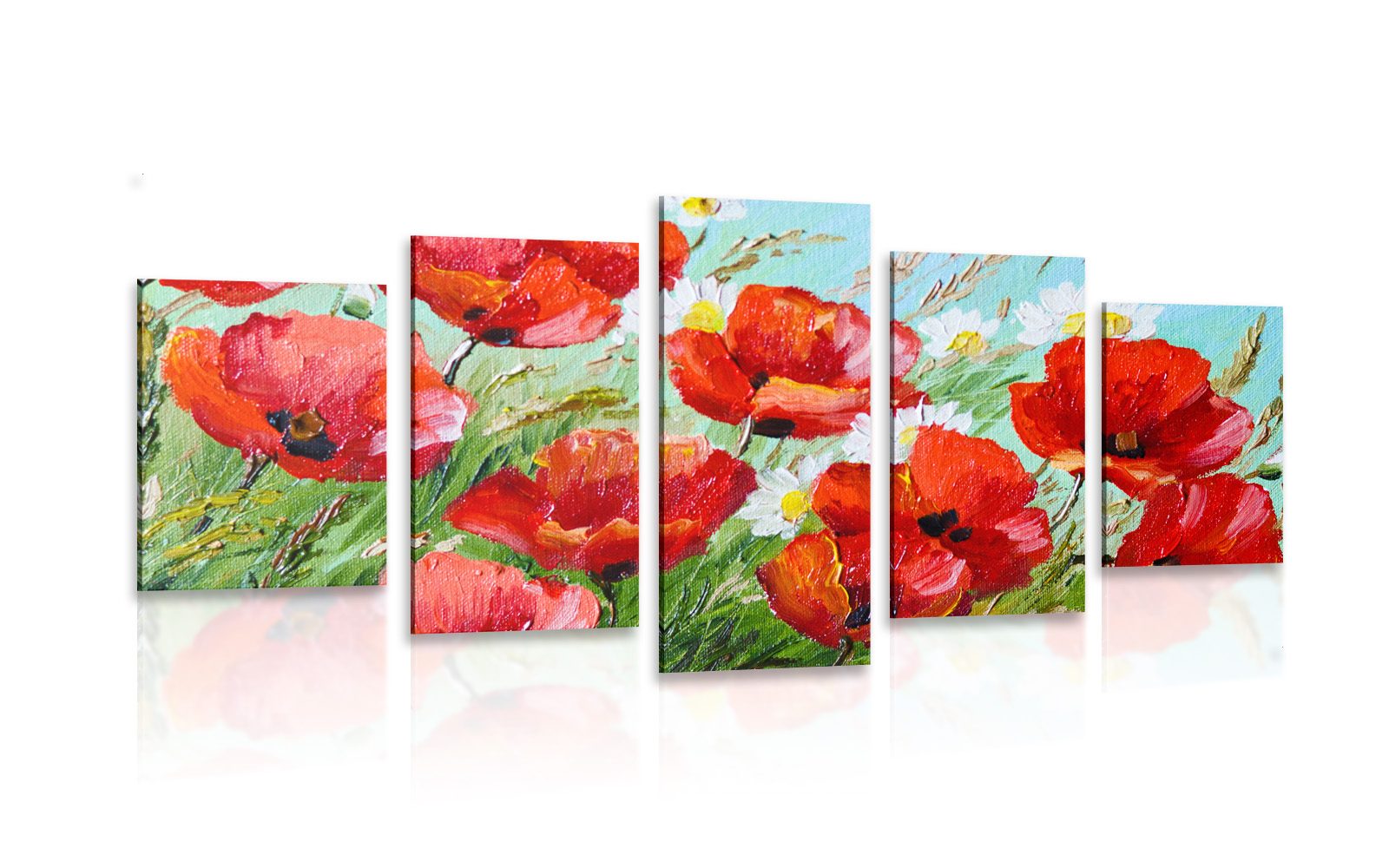 5-DIELNY OBRAZ ČERVENÉ MAKY V POLI - OBRAZY KVETOV - OBRAZY