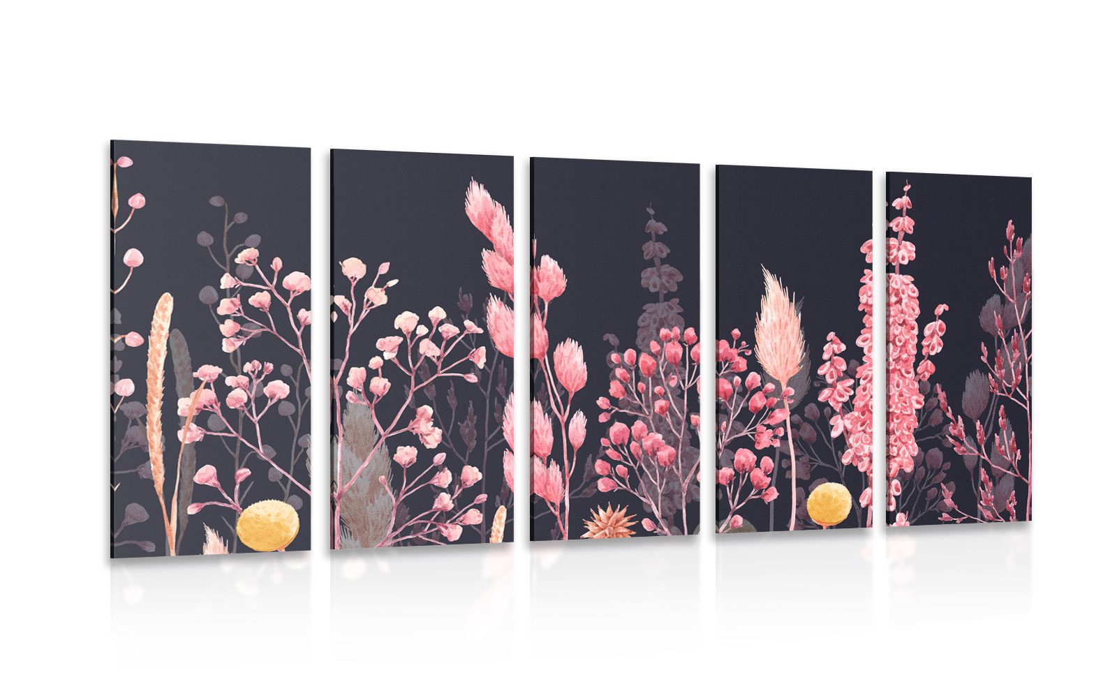 5-DIELNY OBRAZ VARIÁCIE TRÁVY V RUŽOVEJ FARBE - OBRAZY ZÁTIŠIE - OBRAZY