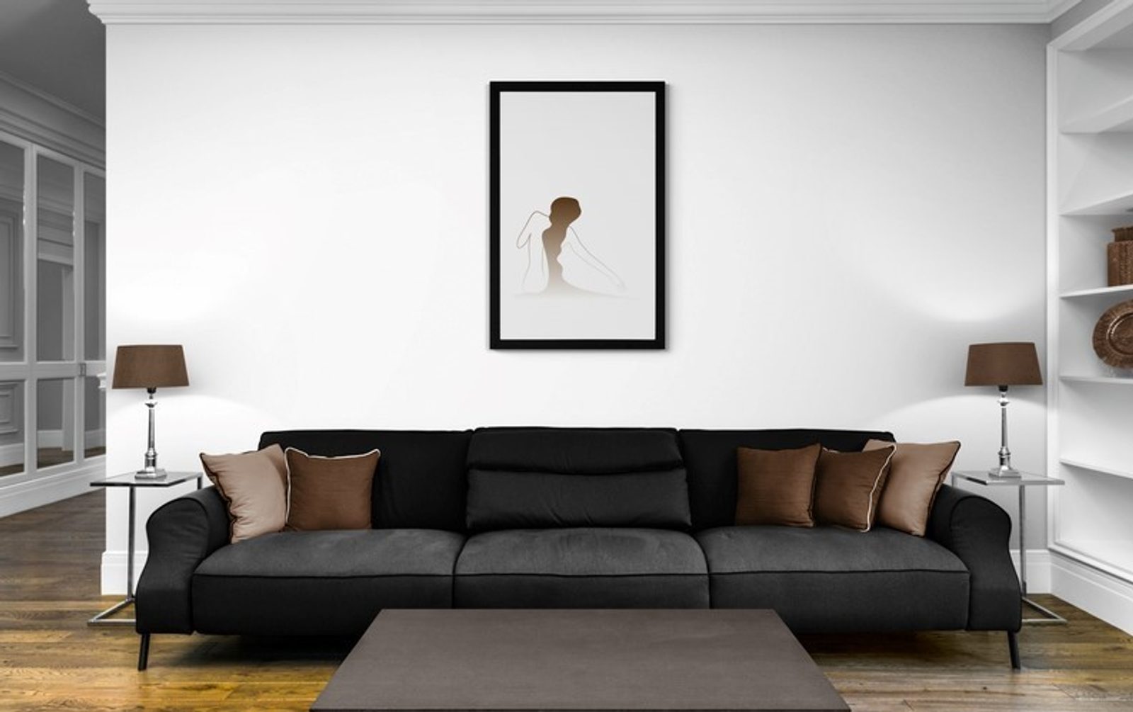 - Plagát viete prispôsobiť farebnej schéme v miestnosti. V Dovido si môžete vybrať z troch rámov v univerzálnych neutrálnych farbách ako je biela, čierna a strieborná.
